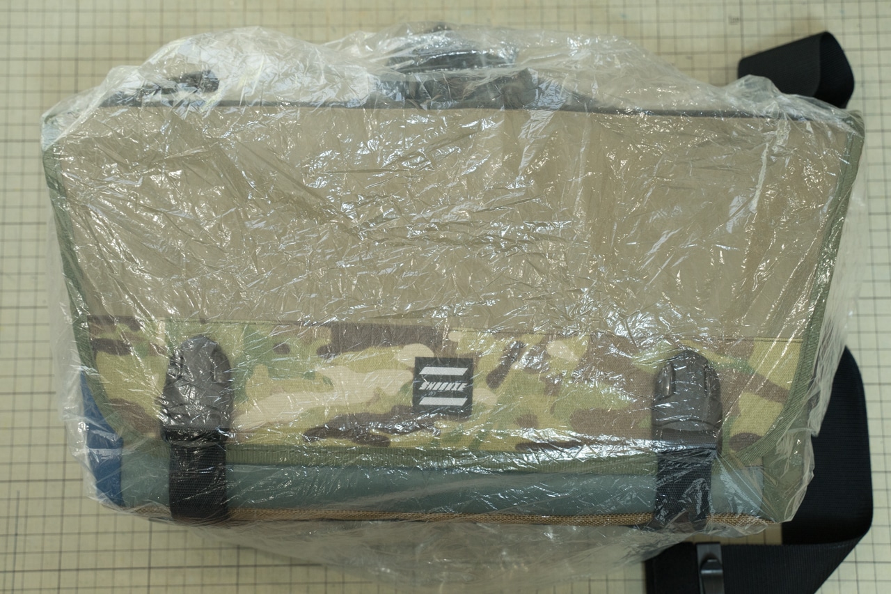 普段使っているメッセンジャーカメラバッグにセリアのレインカバーを被せたところです。