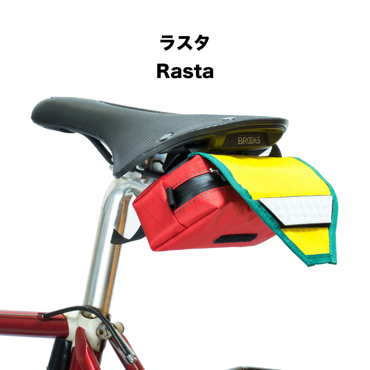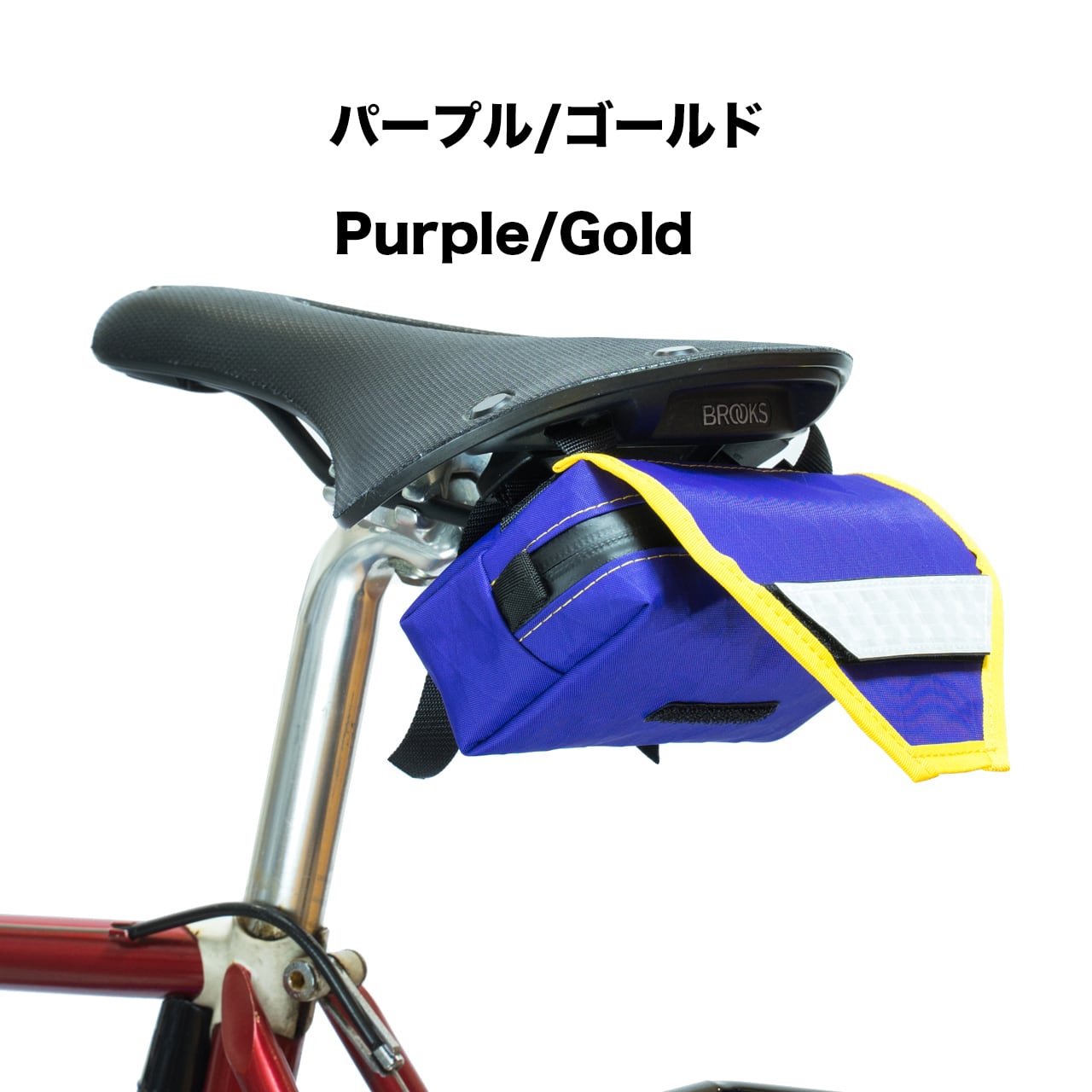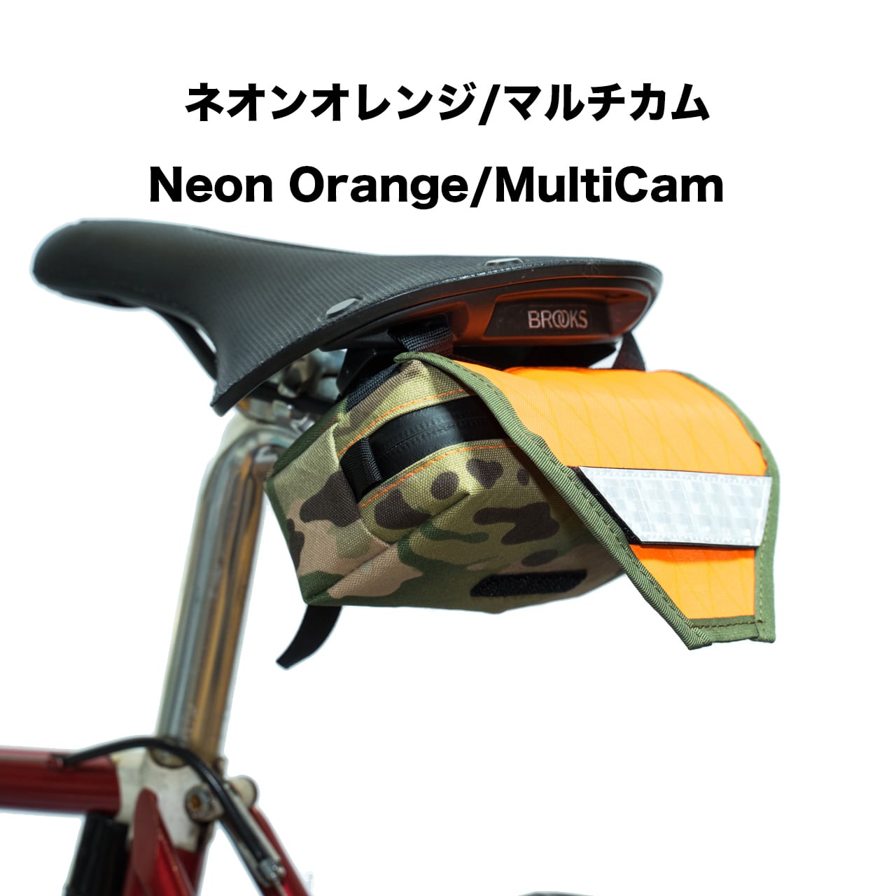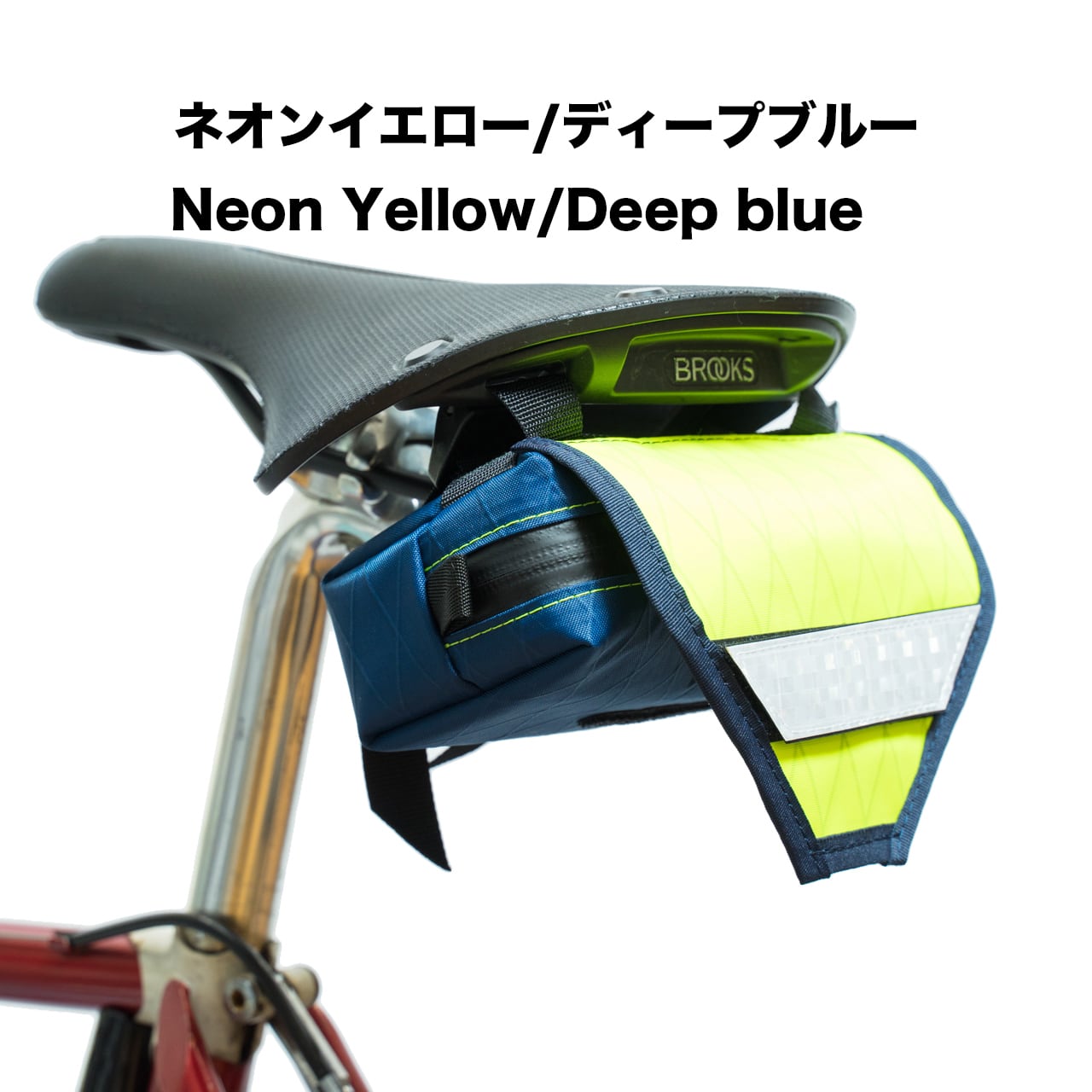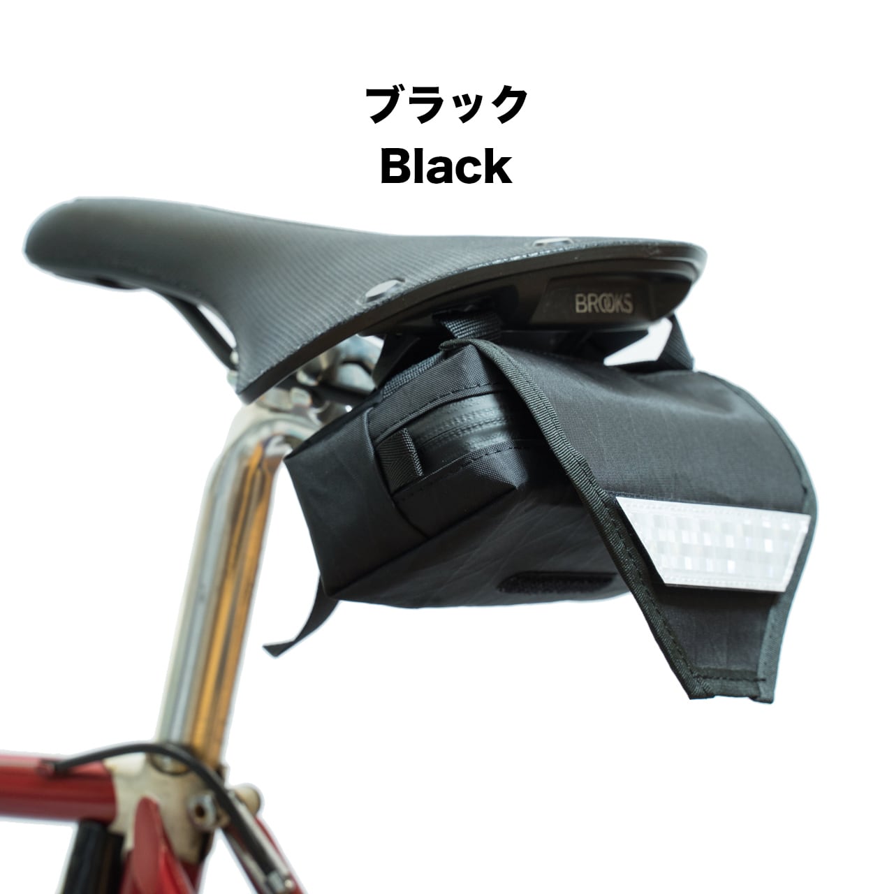 サドル後部の幅20mm以上のループ(ブルックス等)に取り付け可能で、フラップ部分には取り外し可能なリフレクターパッチが搭載されています。