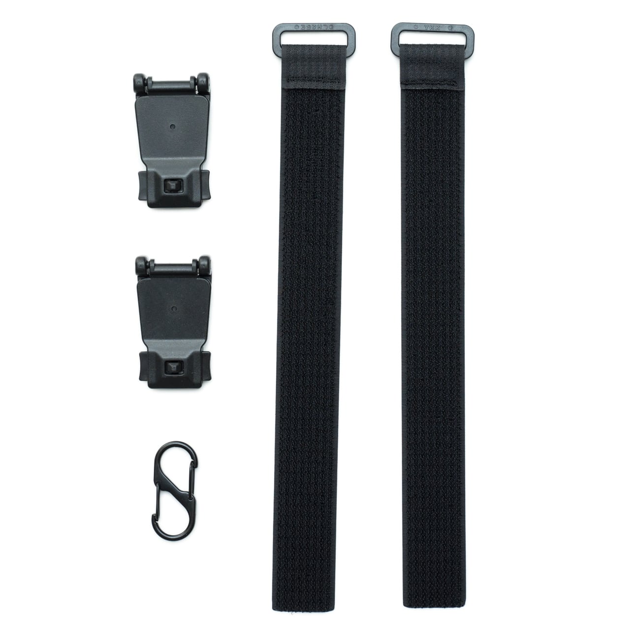 A3.ベルクロ固定時に使用するカラビナ1個・ベルクロストラップ2本とクリップ2個が付属します。